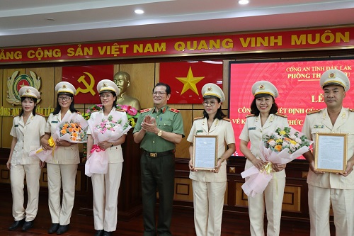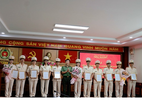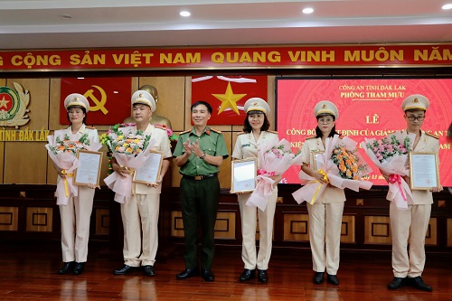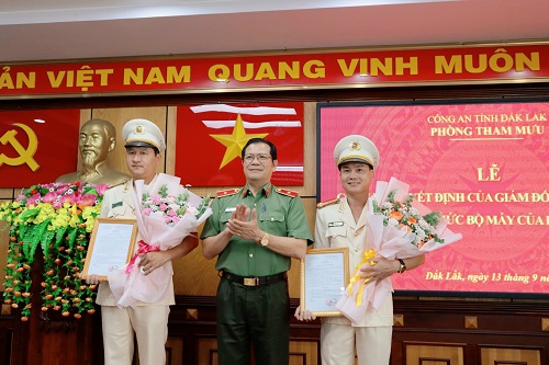 Tại buổi lễ, Đồng chí Giám đốc Công an tỉnh và Trưởng Phòng Tham mưu đã trao các quyết định của Giám đốc Công an tỉnh về kiện toàn tổ chức Bộ máy Phòng Tham mưu: