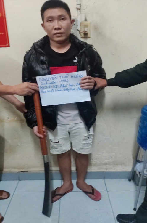 Qua kiểm tra ban đầu, nam thanh niên tên Nguyễn Thái Hưng, sinh năm 1994, trú tại Khu phố Phú Lạc, Phường Hòa Hiệp Nam, thị xã Đông Hòa, tỉnh Phú Yên; mang theo 01 dao tự chế kim loại dài khoảng 110 cm, có lưỡi dài khoảng 50 cm, bản rộng nhất lưỡi dao là 6cm, bản hẹp nhất lưỡi dao là 3 cm, cán dao làm bằng gỗ màu nâu dài 60cm, đường kính cán dao là 3cm. Nam thanh niên cùng hung khí mang theo.