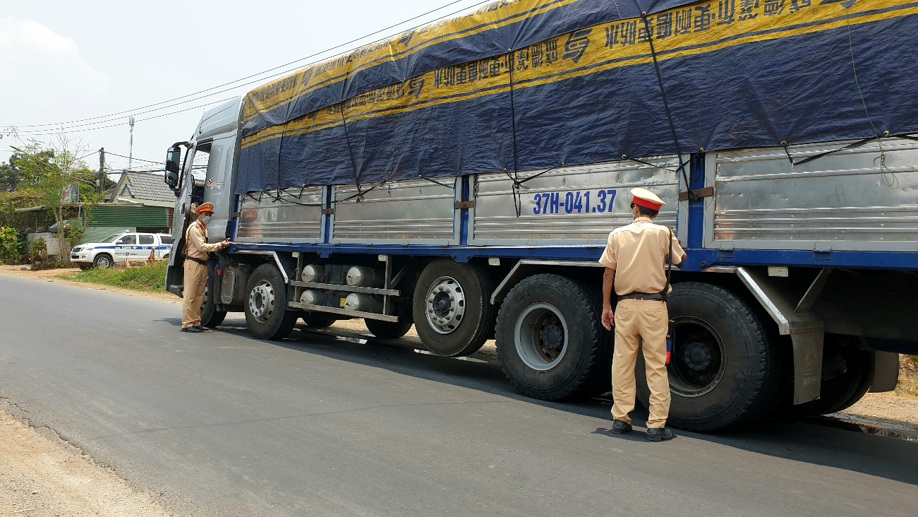 Thực hiện chỉ đạo của Giám đốc Công an tỉnh, hơn hai tháng qua, lực lượng Cảnh sát giao thông Công an từ tỉnh đến cơ sở đã quyết liệt ra quân xử lý các vi phạm: Người điều khiển xe trên đường mà trong cơ thể có chất ma túy, vi phạm nồng độ cồn; chở hàng quá tải trọng, quá vạch dấu mớn nước an toàn, quá khổ giới hạn, tự ý cải tạo, hoán cải phương tiện, không đội mũ bảo hiểm… Lực lượng Công an đã huy động tối đa nhân lực, phương tiện, các thiết bị kỹ thuật nghiệp vụ triển khai đồng bộ các biện pháp công tác, chủ động phòng ngừa, phát hiện, ngăn chặn và xử lý nghiêm hành vi vi phạm của người điều khiển phương tiện theo phương châm thượng tôn pháp luật, “không có vùng cấm, không có ngoại lệ”, không giải quyết bất cứ trường hợp nào can thiệp, xin bỏ qua lỗi vi phạm; xử lý nghiêm các trường hợp lợi dụng mạng xã hội, giả mạo cơ quan báo chí để tác động đến công tác xử lý của Cảnh sát giao thông. Ảnh: Công an huyện Sơn Hoà kiểm tra phương tiện tham gia giao thông