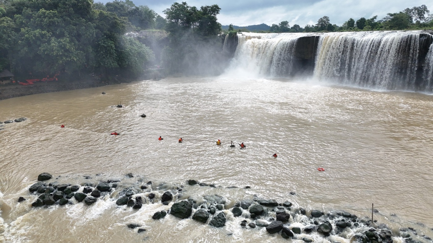 Đồng chí Đại tá Y San ADrơng, Phó Giám đốc Công an tỉnh, Phó Trưởng ban chỉ đạo PCCC và CNCH tỉnh dự và chỉ đạo tại buổi thực tập.Tình huống giả định đặt ra, vào hồi 9h sáng ngày 29/10, tại khu vực thác Dray Nur xảy ra tai nạn, sự cố đuối nước nghiêm trọng. Do nước thượng nguồn đổ về nhanh, lưu lượng lớn, dòng chảy xiết, khiến 06 thuyền SUP đang chở khách du lịch bị lật và cuốn trôi. Trên các thuyền có 6 người bị nạn, trong đó 4 người may mắn bơi được vào bờ, còn 2 người bị chìm và mất tích. Cùng thời điểm đó xe địa hình đang dừng tại thác để 4 du khách chụp hình lưu niệm thì bất ngờ bị nước lũ đầu nguồn đổ về, cuốn trôi và mắc kẹt tại các mỏm đá giữa dòng. Tài xế cùng với 1 du khách bị mắc kẹt trong xe và bị nước cuốn. Đồng thời, hệ thống cầu treo du lịch bị sập hỏng. Một số du khách bịn mắc kẹt không kịp di chuyển vào bờ an toàn, bị nước bao vây không thể thoát ra khỏi khu vực nguy hiểm.Ngay khi sự cố xảy ra, lực lượng tại chỗ đã nhanh chóng cứu được 1 người vào bờ an toàn, đồng thời báo cho lực lượng Cảnh sát PCCC và CNCH - Công an tỉnh Đắk Lắk và các đơn vị chức năng. Nhận được tin báo, phòng Cảnh sát PCCC&CNCH Công an tỉnh Đắk Lắk đã điều động hơn 100 CBCS cùng nhiều loại phương tiện cứu nạn, cứu hộ chuyên dụng đến hiện trường, phối hợp với các lực lượng liên quan triển khai công tác cứu nạn, cứu hộ.