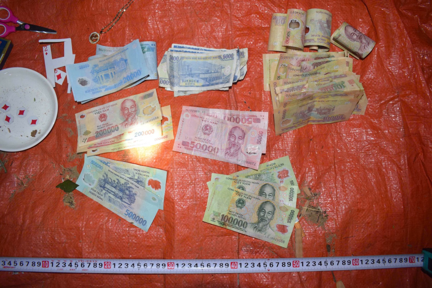 Trước đó, vào lúc 18h ngày 03/11/2024, Cảnh sát hình sự Công an huyện đã phát hiện, bắt quả tang 10 đối tượng gồm 8 nữ, 2 nam đang đánh bạc dưới hình thức xóc đĩa tại khu vực bờ sông buôn Nhum, xã Ea Bia. Ngoài 2,37 triệu đồng trên chiếu bạc, Công an huyện Sông Hinh còn tạm giữ hơn 21,2 triệu đồng của các đối tượng mang theo để đánh bạc cùng một bộ chén đĩa, bài vị.