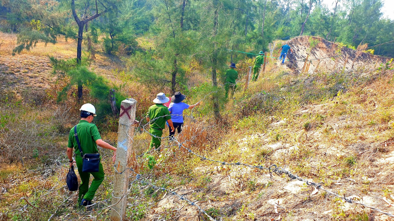Cơ quan CSĐT đo đạc, khám nghiệm hiện trường ông Đặng Thanh Bình khai thác khoáng sản trái phép