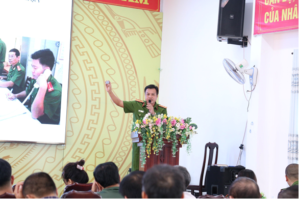 Lãnh đạo phòng Kỹ thuật hình sự giới thiệu tính năng tác dụng thiết bị và quá trình xử lý của cơ quan chức năng khi nhận nội dung tín hiệu báo động có kết nối đến