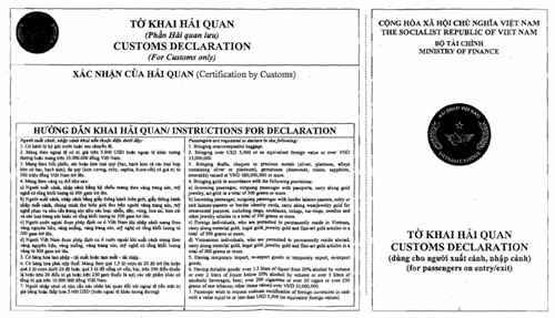 d) Mang theo ngoại tệ tiền mặt, đồng Việt Nam bằng tiền mặt, kim loại quý, đá quý, công cụ chuyển nhượng, mang vàng xuất cảnh, mang vàng nhập cảnh phải khai báo hải quan, cụ thể: