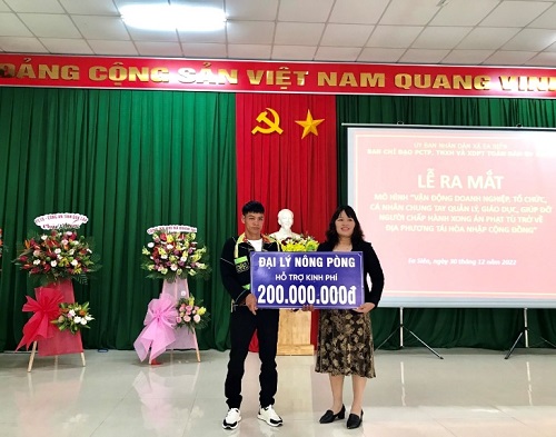 Đại lý Nông Pòng trao vốn cho cá nhân tiêu biểu trong tái hòa nhập cộng đồng