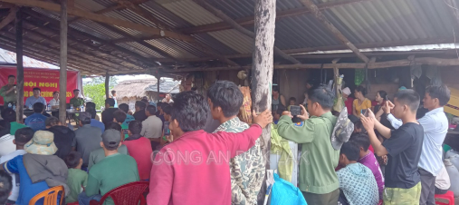 Cán bộ Công an huyện Buôn Đôn tham gia tuyên truyền pháp luật cho bà con ở các cụm dân cư tự phát