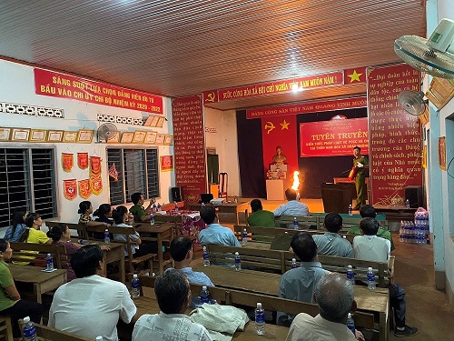Đồng chí Thượng tá Lê Trọng Liệu - Phó Trưởng Công an huyệnphát biểu tại buổi tuyên truyền, phổ biến pháp luật