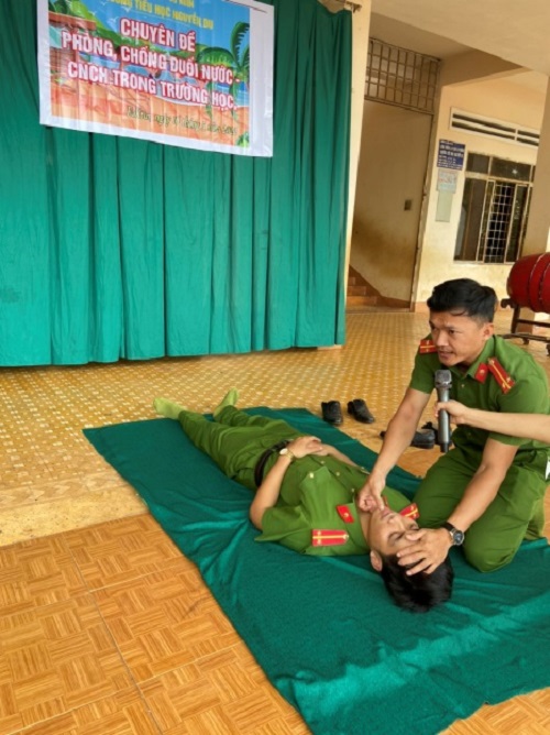 Thông qua hành động trực quan và những câu hỏi đố vui có thưởng, cán bộ tuyên truyền đã cung cấp thông tin về tình hình tai nạn đuối nước trẻ em học sinh để cảnh báo, nhắc nhở, hướng dẫn các em những điều cần lưu ý, hướng dẫn các em tham gia các hoạt động vui chơi giải trí lành mạnh, các lớp học bơi, học kỹ năng phòng, chống tai nạn đuối nước… Đồng thời, tuyên truyền, hướng dẫn giáo viên, nhân viên nhà trường kỹ năng sơ cấp cứu nạn nhân bị đuối nước.