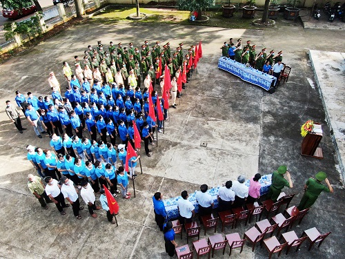 Toàn cảnh cán bộ, chiến sĩ, đoàn viên thanh niên và quần chúng nhân dân tham gia buổi lễ