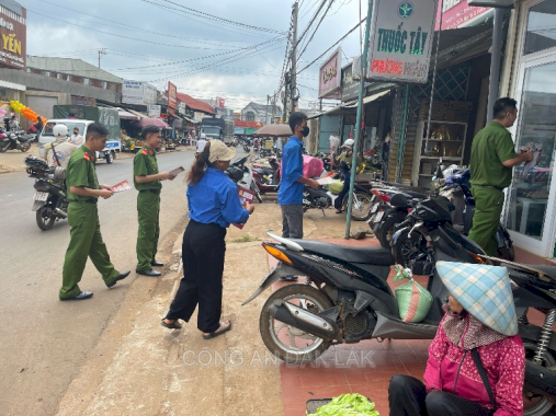 Sáng ngày 19/6/2024, Công an huyện Krông Búk phối hợp với Đoàn Thanh niên các xã, thị trấn trên địa bàn huyện tổ chức hoạt động tuyên truyền, cấp phát gần 5.000 tờ rơi với nội dung thông báo phương thức, thủ đoạn của tội phạm lừa đảo chiếm đoạt tài sản trên không gian mạng hiện nay cho người dân trên địa bàn huyện.