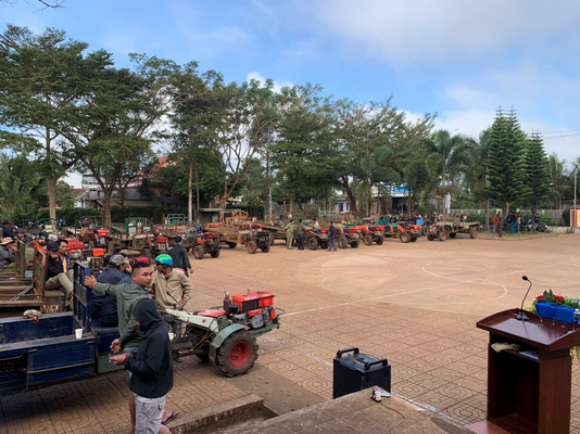 Người dân đồng tình ủng hộ và tích cực hưởng ứng đưa xe công nông đến để lắp các thiết bị an toàn để tham gia giao thông