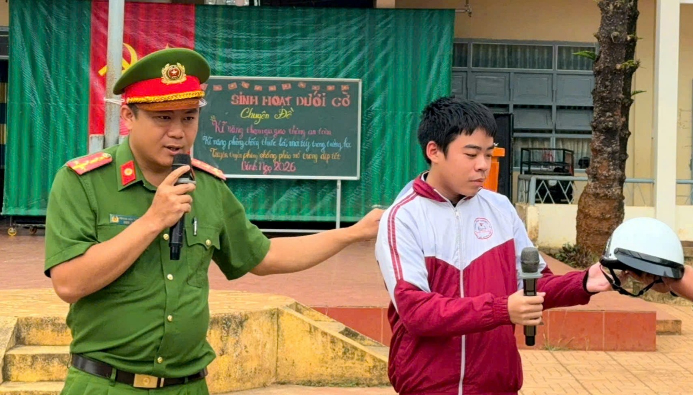 Nhằm nâng cao nhận thức, ý thức chấp hành pháp luật cho thế hệ trẻ, góp phần phòng ngừa vi phạm pháp luật và bảo đảm an ninh, trật tự ngay từ cơ sở, sáng ngày 26/01/2026, Công an phường Buôn Hồ đã tổ chức tuyên truyền, phổ biến, giáo dục pháp luật về trật tự an toàn giao thông và phòng chống pháo nổ, thuốc lá, ma túy trong trường học tại trường trung học cơ sở Nguyễn Trường Tộ.