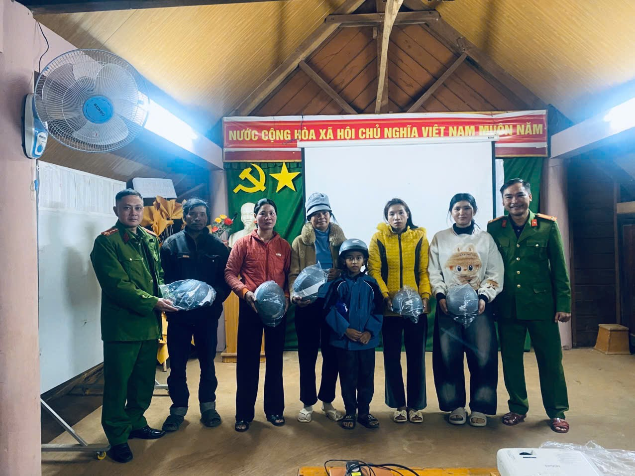 Người dân buôn Kao và buôn Tơng Ju được phát mũ bảo hiểm