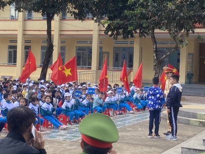 Tuyên truyền Luật Giao thông đường bộ và hướng dẫn các em học sinh tham gia giao thông an toàn