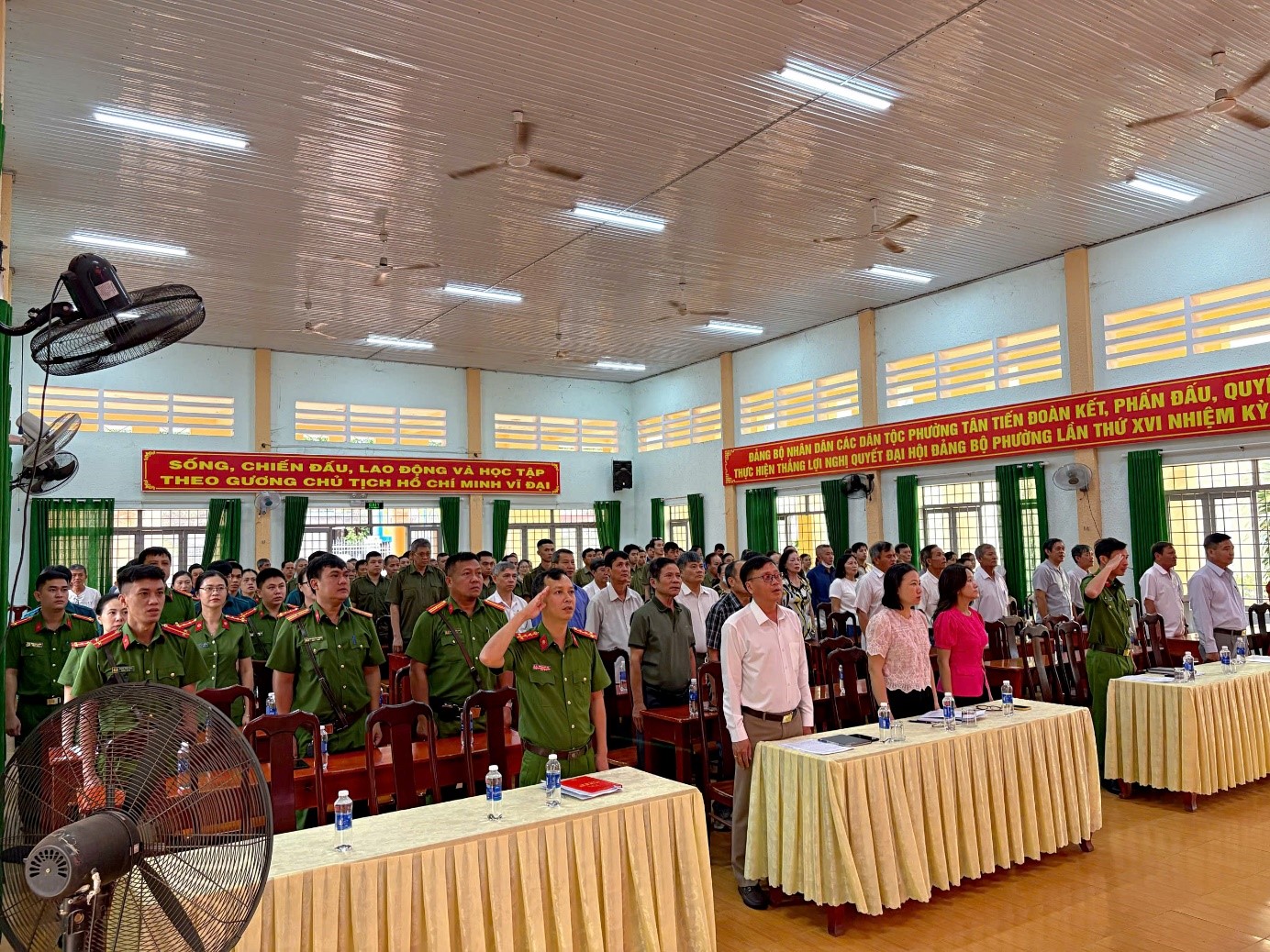 Buổi lễ có sự tham dự của Lãnh đạo Đảng ủy, UBND và HĐND phường Tân Tiến; đại diện Ủy ban Mặt trận Tổ quốc Việt Nam phường; các ban, ngành, đoàn thể, tổ chức chính trị xã hội phường; Bí thư, tổ trưởng 20 tổ dân phố; đại diện các trường học, cơ quan, doanh nghiệp đóng chân trên địa bàn phường; đại diện các hộ gia đình văn hóa của 20 tổ dân phố; 100% lực lượng bảo vệ ANTT ở cơ sở, tình nguyện viên cùng toàn thể Ban chỉ huy và cán bộ Công an phường.