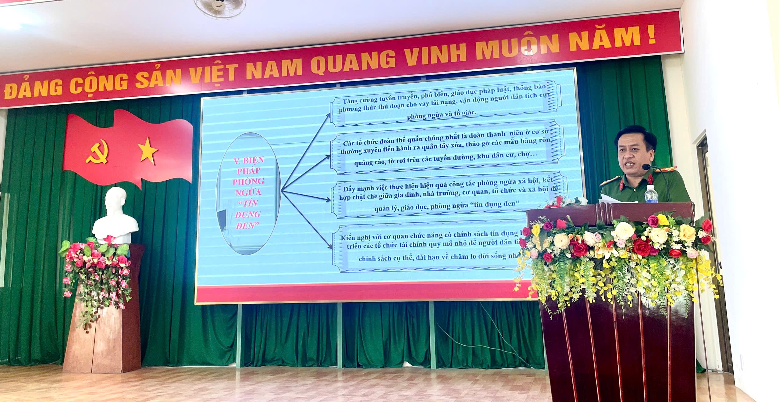 Thượng tá Võ Anh Tú - Phó trưởng Phòng Cảnh sát hình sự tuyên truyền tại Hội nghị