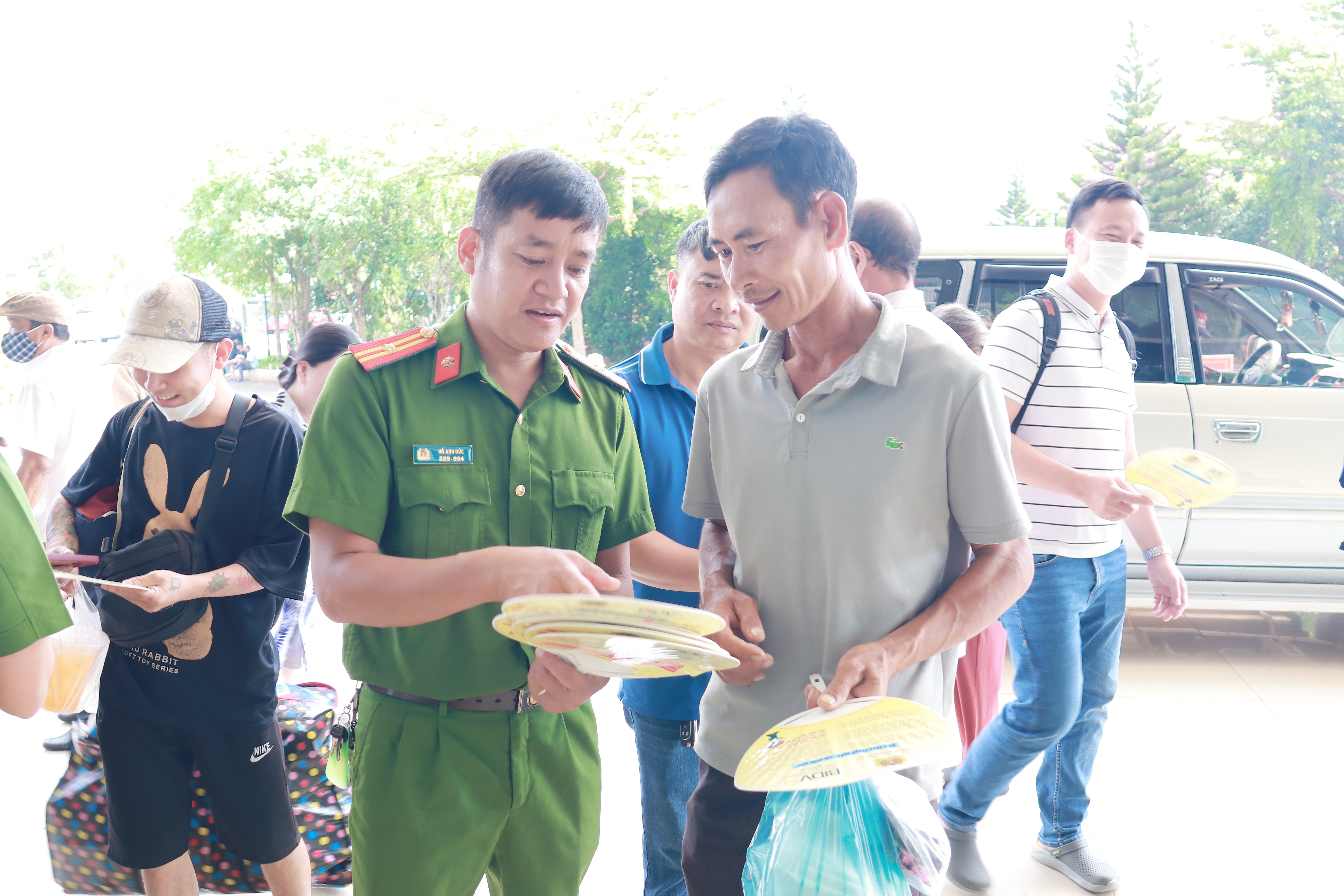 Công an phường Tự An phát quạt nhựa cầm tay và tờ rơi tuyên truyền tại Bệnh viện Đa khoa vùng Tây Nguyên