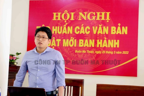 Sáng nay ngày 25/3/2022, Công an thành phố Buôn Ma Thuột tổ chức Hội nghị tập huấn các văn bản luật mới ban hành nhằm nâng cao chất lượng công tác, đảm bảo thực hiện đúng các quy định của pháp luật trong công tác đảm bảo trật tự, an toàn giao thông, trật tự đô thị, trật tự công cộng.