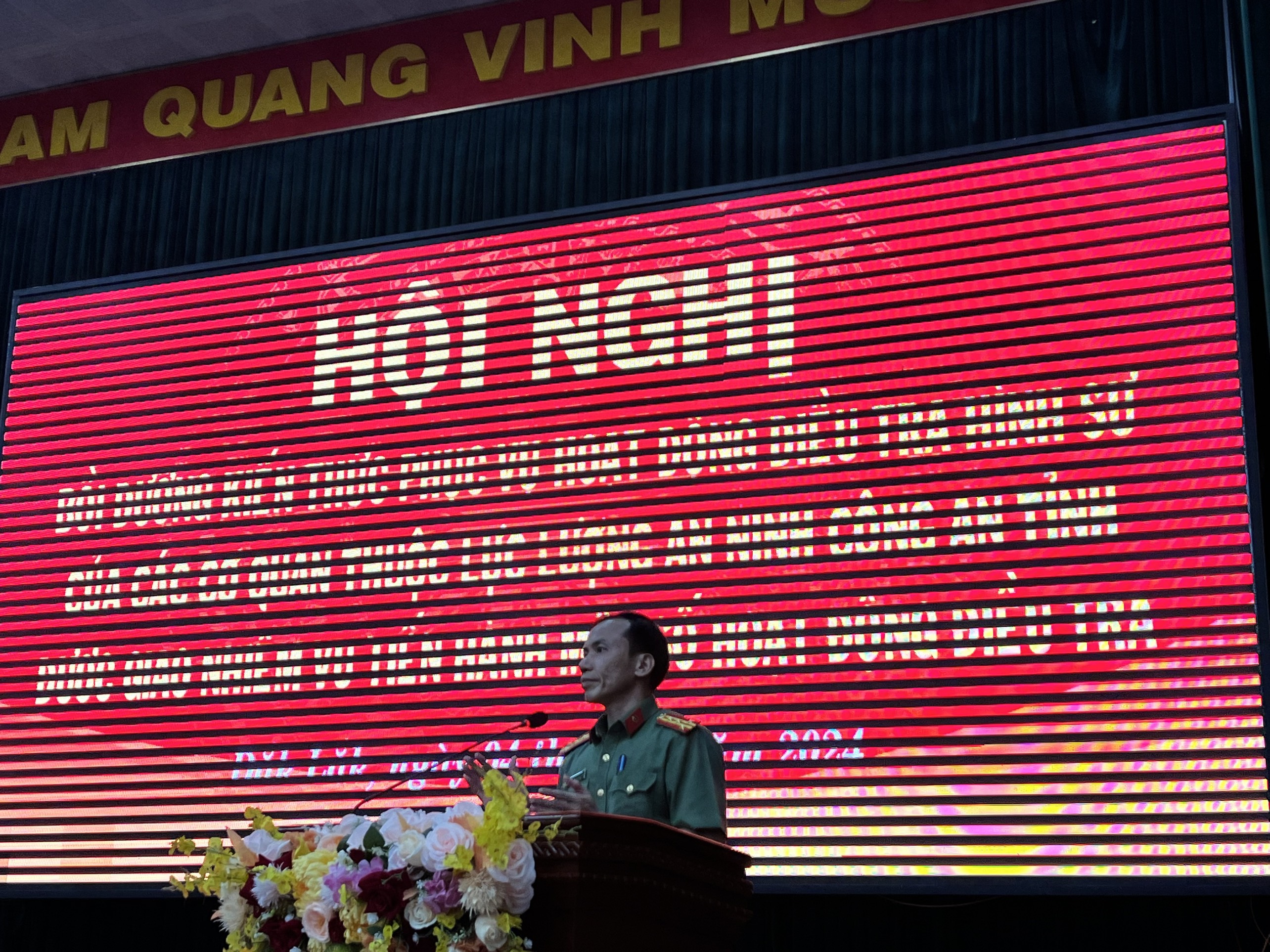 Đồng chí Đại tá Trần Quang Hiếu - Phó Giám đốc Công an tỉnh phát biểu tại Hội nghị
