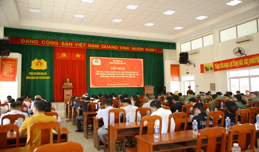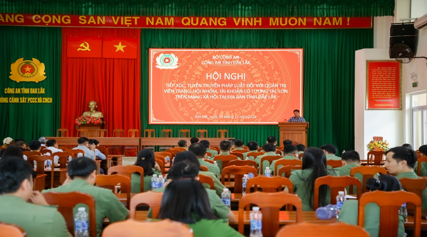Nhằm góp phần nâng cao ý thức chấp hành các quy định của pháp luật nói chung, luật An ninh mạng nói riêng, phát huy vai trò, trách nhiệm trong công tác phòng, chống tội phạm mạng, tội phạm sử dụng công nghệ cao xâm phạm an ninh quốc gia và trật tự an toàn xã hội trên địa bàn; tạo diễn đàn cho quản trị viên các trang, hội, nhóm mạng xã hội trao đổi, học hỏi, chia sẻ những kinh nghiệm, cách làm hay trong cuộc sống, công việc cũng như chung tay xây dựng môi trường mạng an toàn, lành mạnh; ngày 15/11/2024, Công an tỉnh Đắk Lắk đã tổ chức Hội nghị tiếp xúc, tuyên truyền pháp luật đối với quản trị viên các trang, hội, nhóm, tài khoản có tương tác lớn trên mạng xã hội trên địa bàn tỉnh với sự tham gia của gần 200 đại biểu là đại diện của Ban Tuyên giáo Tỉnh ủy, Sở Thông tin Truyền thông và quản trị viên các trang, hội, nhóm, tài khoản có đông thành viên tương tác trên mạng xã hội tại địa bàn.