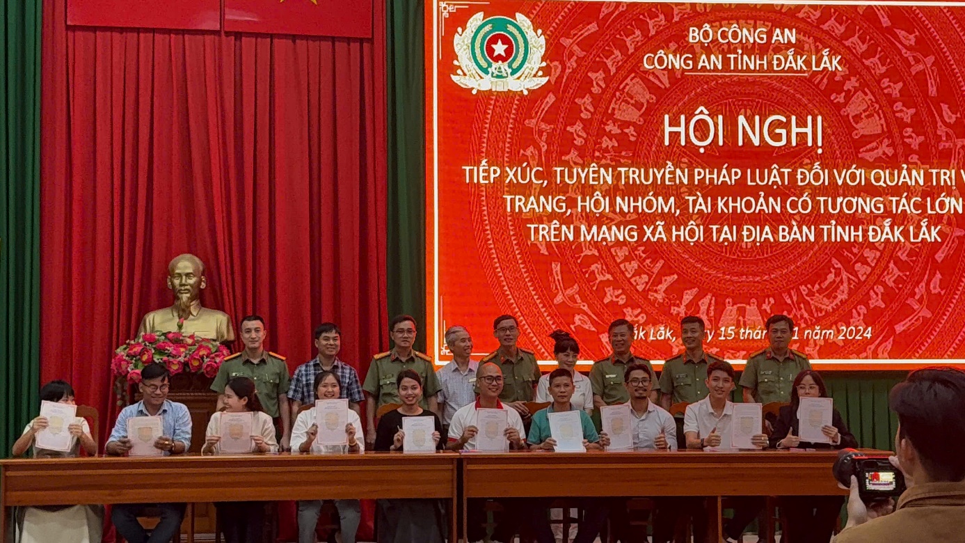 Cũng tại Hội nghị, quản trị viên trang, hội, nhóm, tài khoản mạng xã hội có số lượng đông thành viên theo dõi, tương tác trên địa bàn đã ký cam kết tham gia phong trào Toàn dân bảo vệ An ninh Tổ quốc trên không gian mạng, nhất là tích cực phối hợp chặt chẽ với lực lượng Công an trong việc xây dựng môi trường không gian mạng Đắk Lắk an toàn, lành mạnh, góp phần đảm bảo an ninh trật tự.