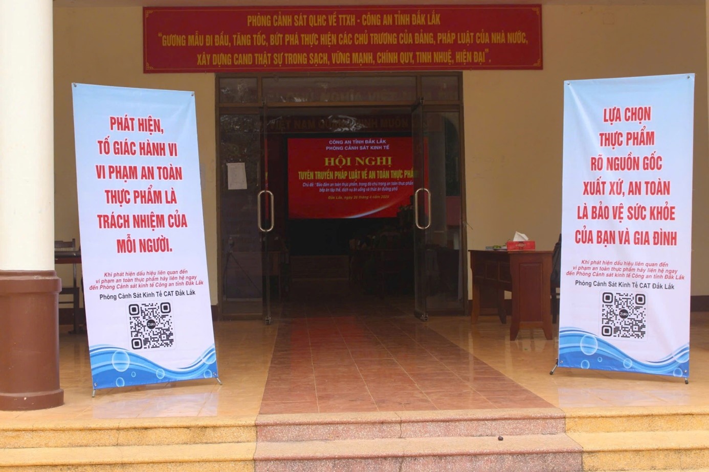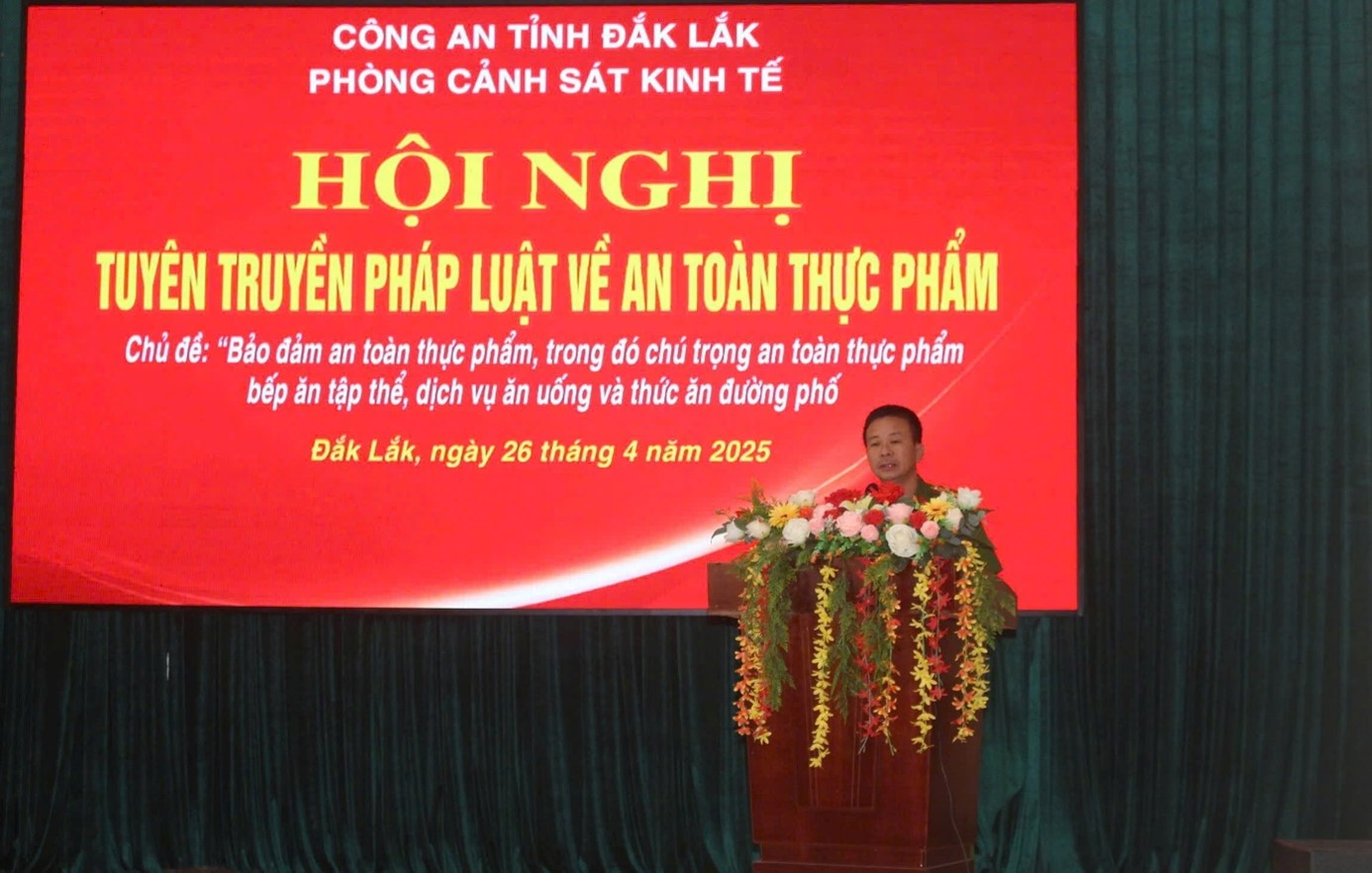 Hưởng ứng “Tháng hành động vì an toàn thực phẩm” năm 2025, ngày 26/4/2025, Phòng Cảnh sát kinh tế Công an tỉnh Đắk Lắk phối hợp với Chi cục Nông lâm sản và thuỷ sản - Sở Nông nghiệp & Môi trường, Phòng Quản lý công nghiệp - Sở Công thương và Phòng An toàn thực phẩm - Sở Y tế tổ chức Hội nghị tuyên truyền pháp luật về an toàn thực phẩm với chủ đề “Bảo đảm an toàn thực phẩm, trong đó chú trọng an toàn thực phẩm bếp ăn tâp thể, dịch vụ ăn uống và thức ăn đường phố” cho hơn 100 cơ sở sản xuất, kinh doanh thực phẩm trên địa bàn tỉnh Đắk Lắk.