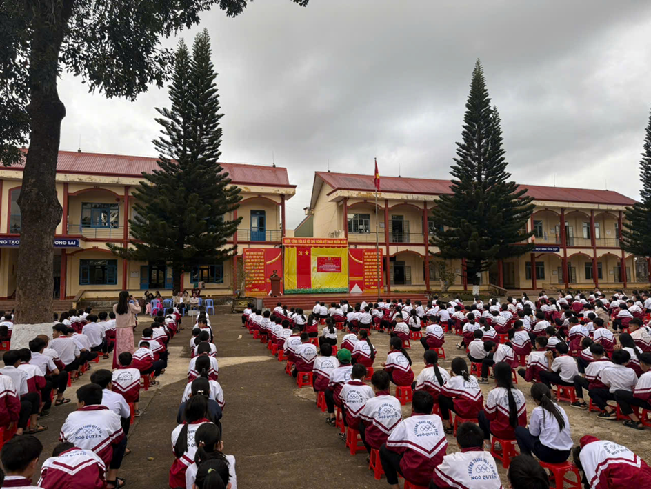 (Giáo viên và các em học sinh tại trường THCS Ngô Quyền)