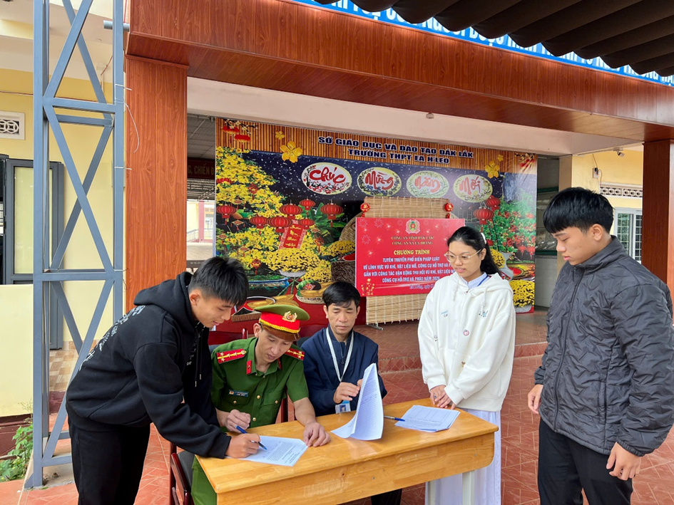 Bên cạnh đó, các em học sinh và thầy cô giáo được quán triệt rõ các hành vi bị nghiêm cấm, cũng như chế tài xử lý đối với việc sản xuất, mua bán, vận chuyển, tàng trữ và sử dụng trái phép VK, VLN, CCHT và pháo. Kết thúc buổi tuyên truyền, Công an xã đã tổ chức cho 100% học sinh ký cam kết chấp hành nghiêm các quy định của pháp luật, không tham gia đốt pháo trái phép, qua đó góp phần nâng cao ý thức tự giác, trách nhiệm của thế hệ trẻ trong việc giữ gìn an ninh trật tự tại địa phương.
