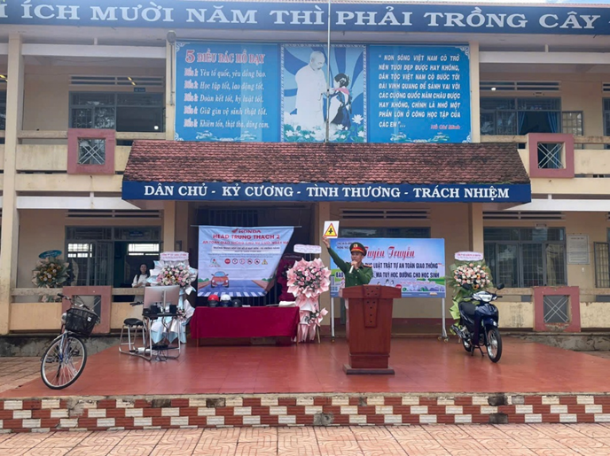Xuất phát từ thực tiễn tình hình học sinh sử dụng phương tiện cá nhân ngày càng gia tăng, tiềm ẩn nhiều nguy cơ vi phạm và tai nạn giao thông, Công an xã đã lồng ghép hướng dẫn kỹ năng nhận diện các tình huống nguy hiểm, cách xử lý phù hợp khi tham gia giao thông. Những nội dung này được truyền tải sinh động, sát thực tế, giúp học sinh dễ hiểu, dễ nhớ và dễ áp dụng.
