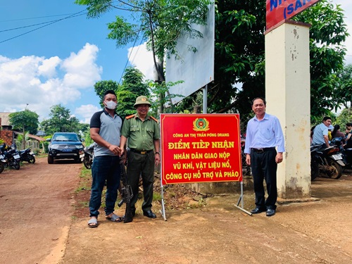 Công an huyện đã chủ động tăng cường bố trí điểm tiếp nhận vũ khí tại các thôn, buôn trên địa bàn nhằm tạo sự thuận lợi và tiết kiệm thời gian cho người dân khi có nhu cầu giao nộp. Bên cạnh đó, đơn vị đã phối hợp với cấp ủy, chính quyền tổ chức các buổi tuyên truyền tại trụ sở UBND các xã, thị trấn, điểm sinh hoạt cộng đồng tại các thôn, buôn nhằm khuyến khích nhân dân tự nguyện giao nộp vũ khí, vật liệu nổ, công cụ hỗ trợ. Đây còn là cơ hội để cung cấp thông tin, giải đáp thắc mắc và nâng cao nhận thức của người dân về tầm quan trọng của việc loại bỏ vũ khí trong cuộc sống hằng ngày. Với 12 buổi tuyên truyền, phát động quần chúng, hơn 800 lượt người tham dự đã tạo ra sự lan tỏa thông điệp và làn sóng hưởng ứng mạnh mẽ trong cộng đồng.
