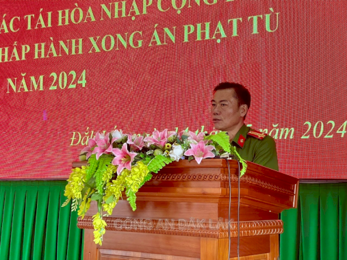Đồng thời đồng chí cũng nhấn mạnh Công tác thi hành án hình sự và tái hòa nhập cộng đồng là một công tác rất phức tạp, khó khăn, có phạm vi rộng, vị trí, vai trò rất quan trọng bảo đảm thi hành nghiêm minh bản án, quyết định của Tòa án, góp phần đấu tranh phòng, chống tội phạm, giữ gìn trật tự an toàn xã hội, bảo đảm các điều kiện thuận lợi để phục vụ các mục tiêu phát triển kinh tế - xã hội của từng địa phương và đất nước. Nên đây cũng là mặt công tác có ý nghĩa quan trọng về chính trị, xã hội và mang tính nhân văn sâu sắc thể hiện bản chất của chế độ XHCN và truyền thống nhân đạo tốt đẹp của dân tộc Việt Nam. Để thực hiện tốt công tác này lực lượng cảnh sát thi hành án hình sự và hỗ trợ tư pháp trên địa bàn cần tích cực tăng cường phối hợp với cấp ủy, chính quyền địa phương, các sở, ban, ngành, tổ chức chính trị - xã hội trong và ngoài tỉnh thực hiện công tác tiếp nhận quản lý, giáo dục, giúp đỡ người chấp hành xong hình phạt tù trở về địa phương cư trú, hướng dẫn, hỗ trợ các thủ tục pháp lý như đăng ký hộ khẩu, cấp đổi căn cước công dân, giúp đỡ họ định hướng nghề nghiệp, vay vốn, tạo công ăn việc làm, hỗ trợ các thủ tục đề nghị xóa án tích .. để đảm bảo cho người chấp hành xong án phạt tù tái hòa nhập cộng đồng, ổn định cuộc sống.