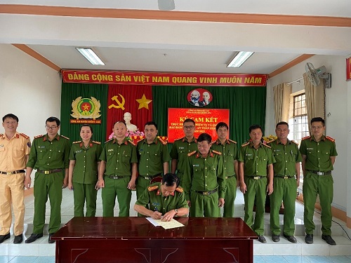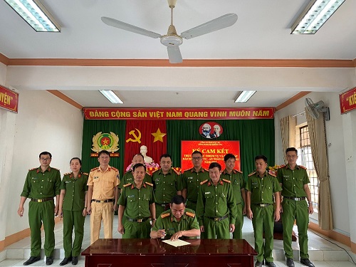 Hình ảnh các đơn vị Công an huyện tiến hành ký cam kết