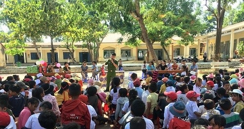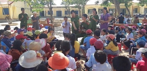 Thông qua hoạt động hướng về cơ sở, đoàn tình nguyện đã lồng ghép tuyên truyền những kĩ năng cần thiết về phòng cháy, chữa cháy cho tập thể cán bộ, giáo viên và gần 700 em học sinh của nhà trường như: kiến thức pháp luật về PCCC, thông tin về tình hình cháy, nổ tại địa phương và trên cả nước. Nêu rõ mối nguy hiểm đe dọa cuộc sống con người và hậu quả, tác hại khi cháy, nổ xảy ra; các sự cố gây ra cháy, nổ thường gặp trong gia đình, trường học và cách phòng tránh; hướng dẫn sử dụng bình chữa cháy xách tay và cách xử lý, thoát nạn khi có cháy xảy ra;… Các em học sinh rất hào hứng và tham gia nhiệt tình khi lần đầu được tiếp cận và trả lời những câu hỏi về an toàn PCCC. Bên cạnh đó, đoàn tổ chức giao lưu văn nghệ với các em tạo sự gần gũi, thân thiện, giúp các em có được tâm lý thoải mái vừa học vừa chơi, nâng cao khả năng tiếp thu những kiến thức mới. Cuối chương trình, đoàn đã trao tặng 50 suất quà gồm: vở và bút cho các em học sinh hiếu học có hoàn cảnh khó khăn, 03 bình chữa cháy cho nhà trường. Tập thể các thầy cô giáo và các em học sinh nhà trường bày tỏ sự cảm kích và gửi lời cảm ơn đến cán bộ, chiến sĩ Phòng Cảnh sát PCCC&CNCH Công an tỉnh đã quan tâm, tạo điều kiện giúp đỡ cán bộ, giáo viên nhà trường có thêm kĩ năng, kiến thức trong công tác PCCC; động viên kịp thời các em học sinh có kết quả cao trong học tập và rèn luyện; đồng thời, củng cố thêm niềm tin, khích lệ, nuôi dưỡng ước mơ hoài bão của các em trong ngày Quốc tế thiếu nhi 1/6 sắp đến.