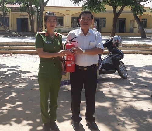 Trao tặng bình chữa cháy cho nhà trường