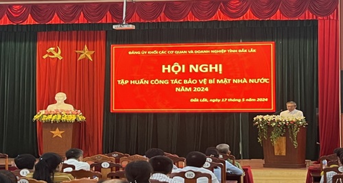 Ngày 17/5/2024 Phòng An ninh chính trị nội bộ, Công an tỉnh đã phối hợp với Đảng ủy Khối các cơ quan doanh nghiệp tỉnh tổ chức Hội nghị tập huấn công tác bảo vệ bí mật nhà nước năm 2024; tham dự Hội nghị gồm các đồng chí là đại diện lãnh đạo các cấp ủy Đảng, các đồng chí làm công tác tham mưu soạn thảo văn bản của tổ chức cơ sở đảng trực thuộc Đảng bộ Khối các cơ quan và doanh nghiệp tỉnh Đắk Lắk.