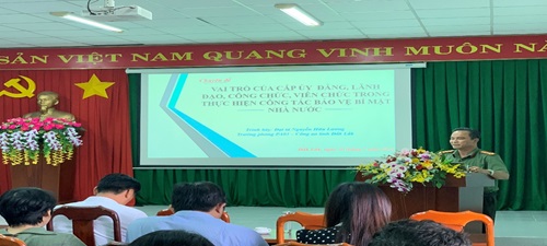 Tại nội dung Chuyên đề 1 Đồng chí Đại tá Nguyễn Hữu Lương - Trưởng phòng An ninh chính trị nội bộ đã khái quát về vai trò, tầm quan trọng của công tác bảo vệ BMNN, nguy cơ, thực trạng và nguyên nhân dẫn đến việc lộ, mất BMNN. Qua đó, đề nghị cấp ủy, lãnh đạo cơ quan và các đơn vị trực thuộc nâng cao hơn nữa vai trò trách nhiệm trong lãnh đạo, chỉ đạo quán triệt thực hiện công tác bảo vệ BMNN tại cơ quan, đơn vị; đầu tư mua sắm trang thiết bị đảm bảo theo quy định phục vụ công tác bảo vệ BMNN. Đối với công chức, viên chức, người làm việc liên quan đến BMNN cần tập trung nghiên cứu Luật Bảo vệ BMNN, các văn bản hướng dẫn có liên quan, nâng cao nhận thức về vai trò, tầm quan trọng của công tác này để thực hiện có chiều sâu và hiệu quả.