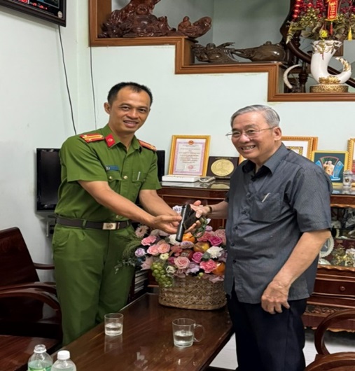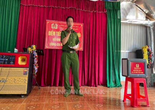 Đồng chí Trung tá Đặng Trung Kiên - Phó trưởng phòng Cảnh sát QLHC về TTXH - Công an tỉnh Đắk Lắk thực hiện tuyên truyền, vận động thu hồi vũ khí trên địa bàn thành phố Buôn Ma Thuột