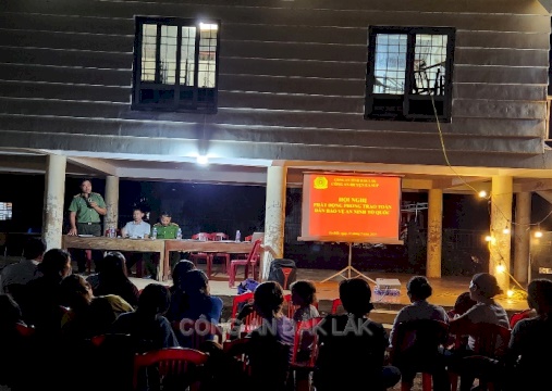 Công an huyện Buôn Đôn tuyên truyền vận động thu hồi vũ khí, công cụ hỗ trợ cho bà con nhân dân tại huyện Buôn Đôn