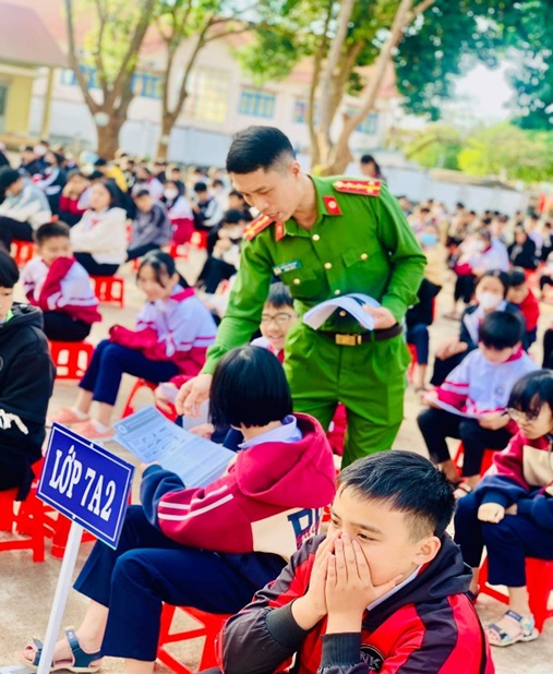Phối hợp tuyên truyền tác hại về sản xuất, chế tạo, tàng trữ, sử dụng pháo trái phép kết hợp phát tờ rơi tuyên truyền cho các em học sinh tại huyện Ea H’Leo