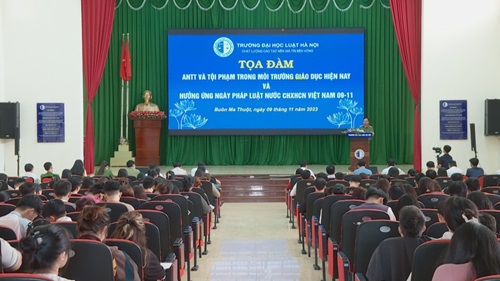 Hưởng ứng ngày Pháp luật nước Cộng hòa xã hội chủ nghĩa Việt Nam, sáng ngày 9/11, Phân hiệu trường Đại học luật Hà Nội tại Đắk Lắk phối hợp với Phòng An ninh chính trị nội bộ Công an tỉnh, Công an TP Buôn Ma Thuột và các cơ quan chức năng tổ chức buổi Toạ đàm với chủ đề “An ninh, trật tự và tội phạm trong môi trường giáo dục hiện nay”.