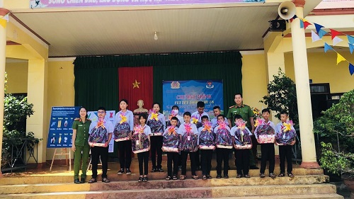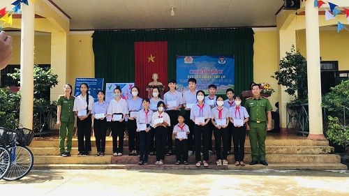 Phòng Cảnh sát môi trường tặng học bổng cho các cháu đạt thành tích xuất sắc trong năm học 2022-2023.