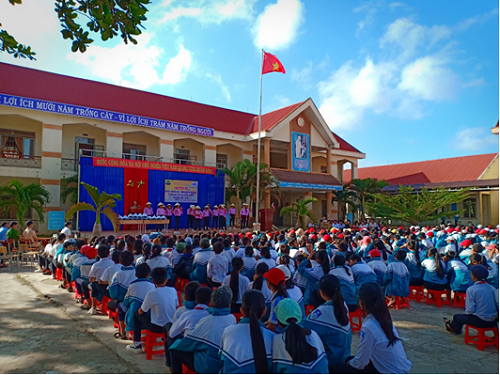 Đông đảo các em học sinh tham dự buổi tuyên truyền tại trường THCS Cư Êwi