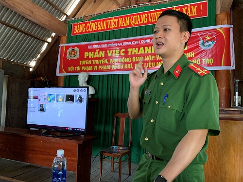 Thông qua buổi tuyên truyền, đoàn công tác cũng đã phổ biến đến Nhân dân trên địa bàn các quy định của pháp luật về quản lý, sử dụng vũ khí, vật liệu nổ và công cụ hỗ trợ. Đồng thời, lồng ghép truyên truyền đến người dân những phương thức, thủ đoạn của tội phạm hoạt động liên quan đến “tín dụng đen”, qua đó nâng cao nhận thức, tinh thần cảnh giác cho Nhân dân, đặc biệt là đồng bào dân tộc thiểu số vùng biên giới tại buôn Đ’rang Phôk, xã Krông Na, huyện Buôn Đôn.
