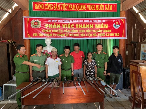 Trước đó, với phương châm “Đi từng ngõ, gõ từng nhà, rà từng người”, Chi đoàn – Hội Phụ nữ Văn phòng Cơ quan Cảnh sát điều tra Công an tỉnh cùng Công an xã Krông Na, huyện Buôn Đôn phối hợp với chính quyền và Ban tự quản các thôn, buôn, tranh thủ người có uy tín đã đến từng nhà, khu dân cư, nương rẫy để tuyên tuyền, phổ biến các quy định của pháp luật về quản lý vũ khí, vật liệu nổ, công cụ hỗ trợ. Kết quả, trong tháng 9/2020, đã vận động nhân dân xã Krông Na, huyện Buôn Đôn tự nguyện giao nộp và thu hồi 13 khẩu súng tự chế các loại.