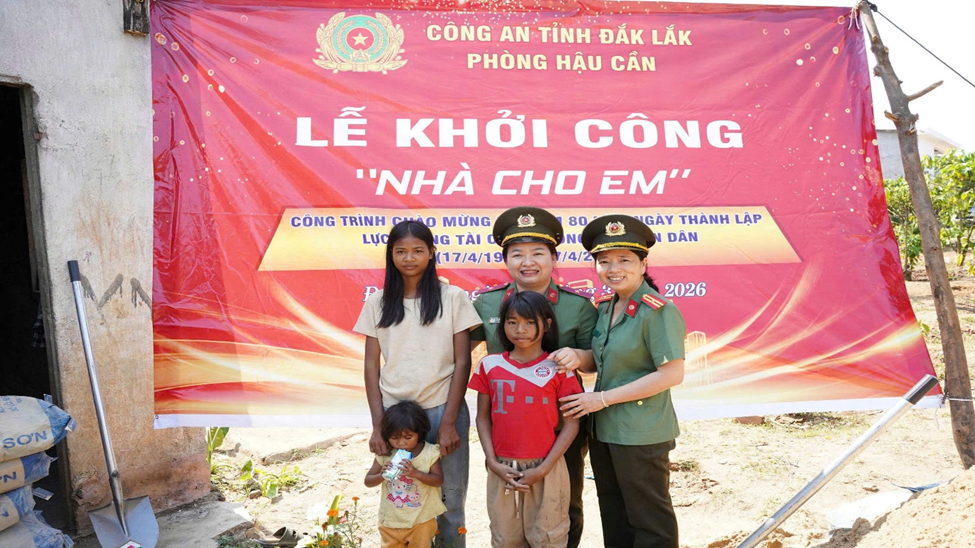 Hướng tới chào mừng kỷ niệm 80 năm Ngày thành lập lực lượng Tài chính Công an nhân dân (17/4/1946 – 17/4/2026), 95 năm Ngày thành lập Đoàn TNCS Hồ Chí Minh, 70 năm Ngày truyền thống Đoàn TNCS Hồ Chí Minh Bộ Công an, sáng ngày 21/3/2026, Phòng Hậu cần đã tổ chức Lễ khởi công xây dựng công trình thanh niên “Nhà cho em” dành tặng 03 chị em: H’Hà Mbôn (14 tuổi), H’Hiên Mbôn (12 tuổi), H’Duyên Mbôn (10 tuổi) tại Buôn Năm, xã Đắk Phơi.