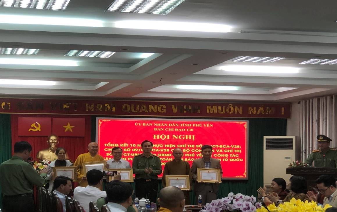 Đại đức Thích Chúc Phát, đại biểu HĐND tỉnh (đứng thứ 7 từ tỉnh từ bên trái sang) tham gia đoàn Ban trị sự GHPGVN tỉnh thăm, tặng quà chúc mừng Phòng An ninh nội địa