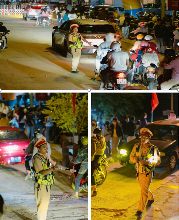 Đặc biệt vào ban đêm – thời điểm lượng người tham gia lễ hội tăng đột biến – 100% quân số của lực lượng Cảnh sát giao thông và các lực lượng Công an khác trên địa bàn được huy động làm nhiệm vụ. Trong điều kiện ánh sáng hạn chế, lượng phương tiện tập trung đông, cán bộ, chiến sĩ vẫn nêu cao tinh thần trách nhiệm, thường xuyên quan sát, kịp thời xử lý các tình huống phát sinh, bảo đảm an toàn cho người và phương tiện.
