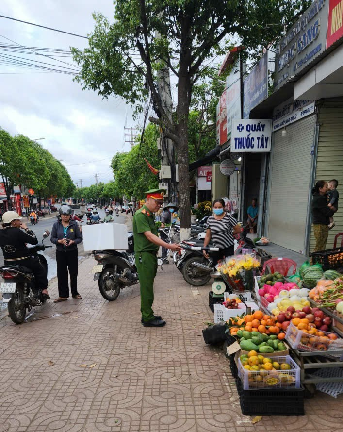 Một số hình ảnh Công an xã tuyên truyền, nhắc nhở bà con tại tuyến đường trung tâm không lấn chiếm, sử dụng trái phép hành lang an toàn giao thông