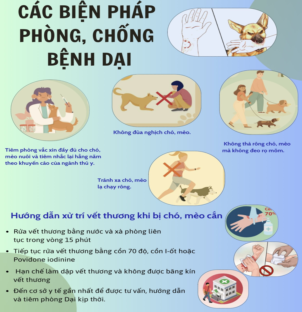 Để chủ động phòng, chống bệnh dại, Bệnh viện số 1 Công an tỉnh Đắk Lắk khuyến cáo mỗi người dân cần nâng cao ý thức trách nhiệm trong việc quản lý và chăm sóc vật nuôi. Cụ thể, cần thực hiện tiêm vắc-xin phòng dại cho chó, mèo đầy đủ và đúng định kỳ theo quy định; không thả rông vật nuôi, đặc biệt tại khu vực đông người; khi đưa vật nuôi ra nơi công cộng phải đeo rọ mõm và có người kiểm soát. Đồng thời, người dân cần hạn chế việc đùa nghịch, trêu chọc chó, mèo để tránh nguy cơ bị cắn; thường xuyên theo dõi tình trạng sức khỏe của vật nuôi và kịp thời xử lý khi phát hiện dấu hiệu bất thường. Mỗi cá nhân cần nhận thức rõ mức độ nguy hiểm của bệnh dại, tuyệt đối không chủ quan, từ đó chủ động thực hiện các biện pháp phòng ngừa, góp phần bảo vệ an toàn sức khỏe cho bản thân, gia đình và toàn xã hội.