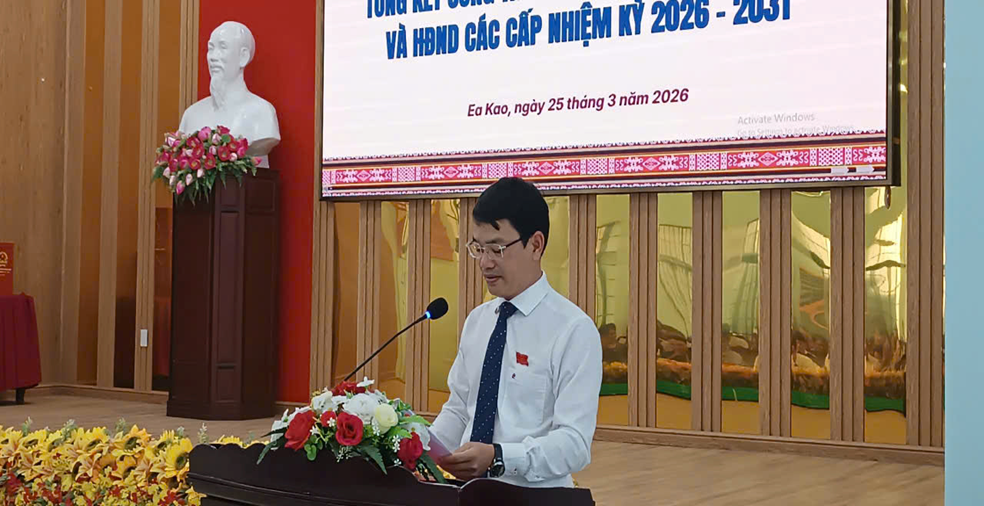 Chiều ngày 25/3/2026, Hội đồng nhân dân phường Ea Kao đã tổ chức Hội nghị tổng kết nhiệm kỳ HĐND phường khóa I, nhiệm kỳ 2021-2026, đồng thời tổng kết công tác bầu cử đại biểu Quốc hội khóa XVI và đại biểu HĐND các cấp nhiệm kỳ 2026 - 2031, qua đó trao thưởng cho các tập thể, cá nhân được UBND phường Ea Kao khen thưởng trong công tác bầu cử đại biểu Quốc hội và đại biểu HĐND các cấp nhiệm kỳ 2026-2031.
